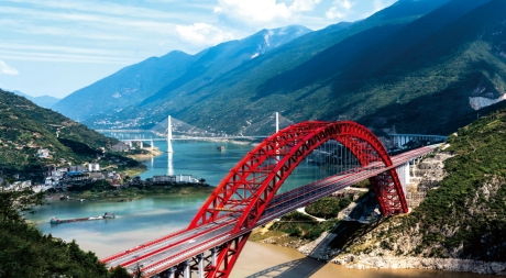 湖北秭歸香溪長(zhǎng)江公路大橋   古斯塔夫斯·林德撒爾獎(jiǎng)  世界上最大跨度中承式鋼箱桁架推力拱橋